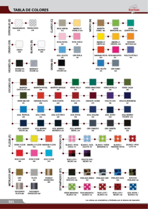 502 Los colores son orientativos y limitados por el sistema de impresión