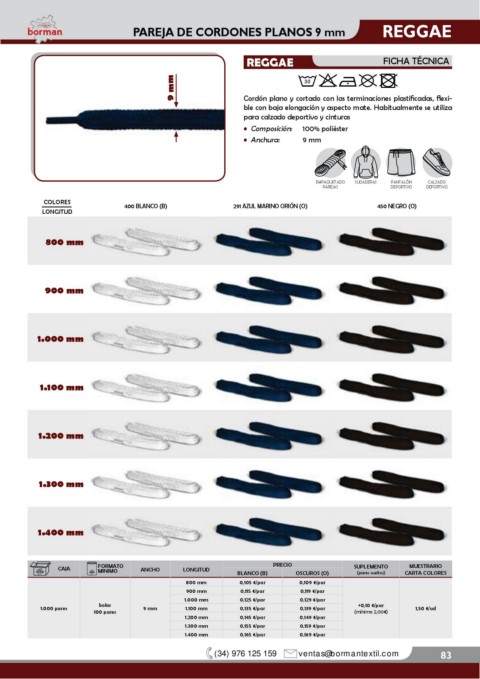 1.000 pares 9 mm 1.100 mm 0,135 €/par 0,139 €/par 1,50 €/ud