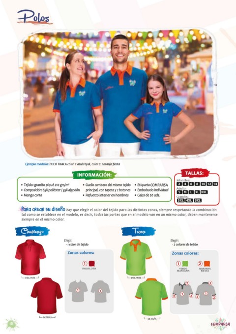 Ejemplo modelos: POLO TRACA color 1: azul royal, color 2: naranja fiesta