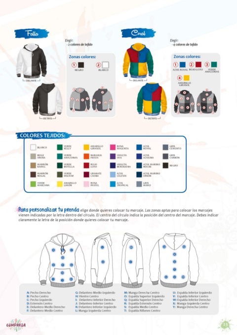 Para personalizar tu prenda elige donde quieres colocar tu marcaje. Las zonas aptas para colocar los marcajes