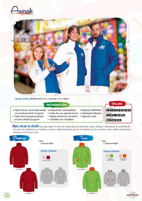 Ejemplo modelos: ANORAK FALLA color 1: azul royal, color 2: blanco