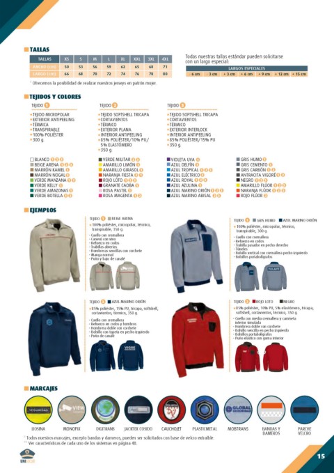 85% poliéster, 15% PU, tricapa, softshell, 85% poliéster, 10% PU, 5% elastómero, tricapa,