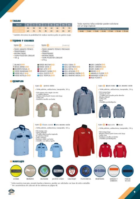 100% poliéster, antibacterias, transpirable, 185 g. 100% poliéster, antibacterias, transpirable, 210 g.